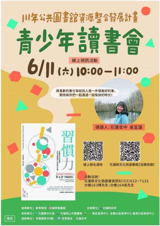 (八)活動聯絡人:活動詳情請洽本局圖書資訊科03-8227121分機163陳先生。