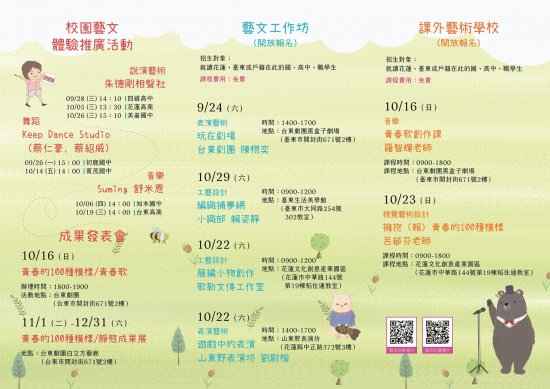 一、藝文工作坊-招生對象:就讀花蓮或戶籍在此的國、高中、