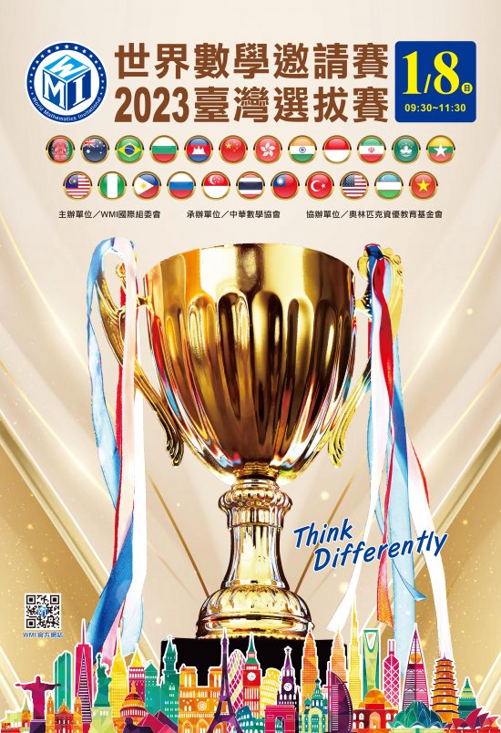 2023 年1 月8 日(星期日)舉辦「WMI 世界數學邀請賽-2023 臺灣選拔賽」