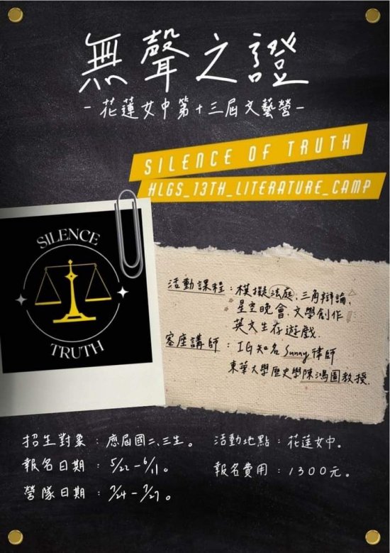 轉知~花蓮女中第十三屆文藝營「無聲之證」。