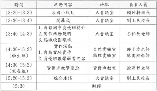 1.活動名稱:自強國中112學年度資賦優異學生就學宣導說明會。