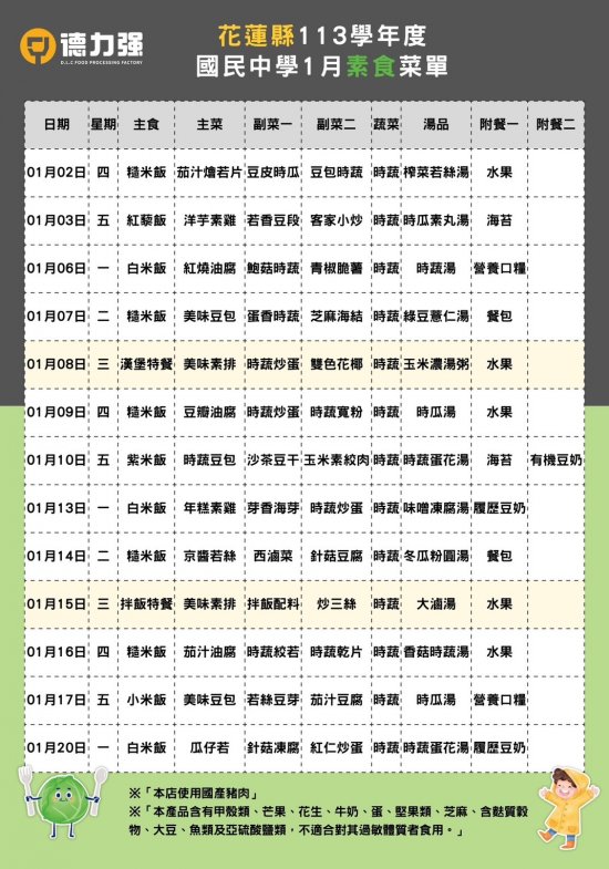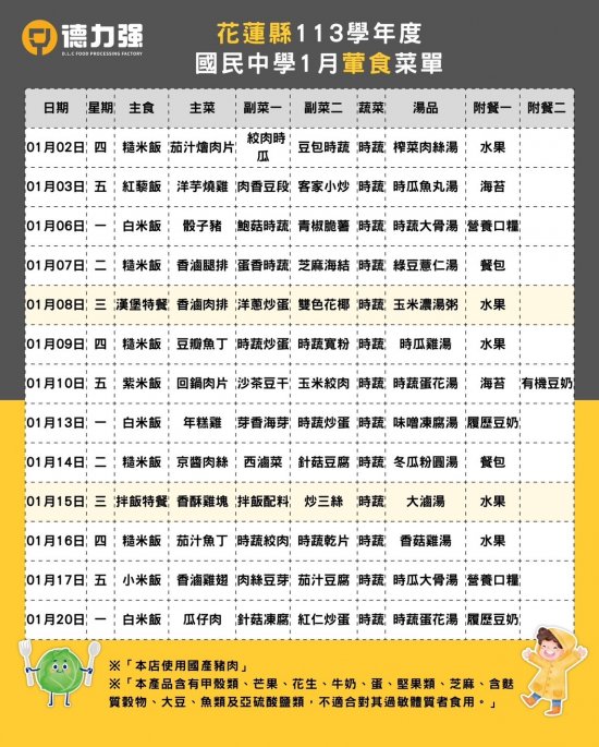 公告114年1月份學生午餐菜單, 請下載附件參考!!