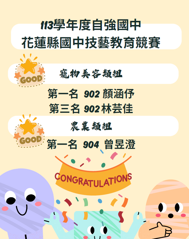 賀!!!本校參加花蓮縣113學年度國中技藝競賽獲得佳績