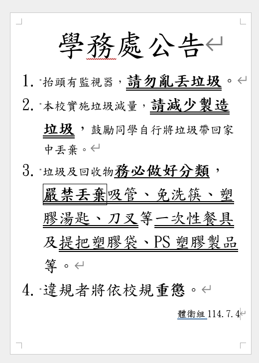 114學年度暑假輔導期間,校園衛生(垃圾桶、回收桶)注意事項,詳如說明,請查照。