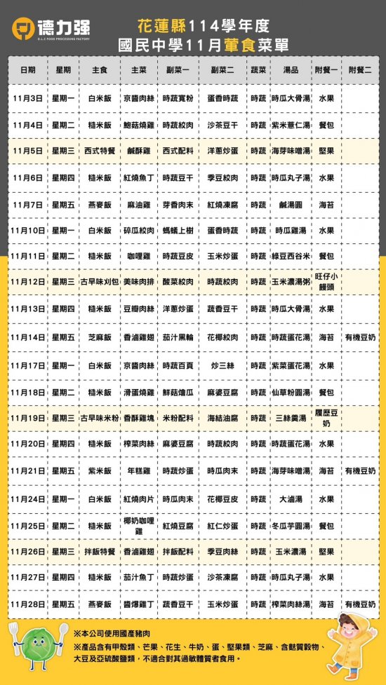 114年11月份學生午餐菜單, 請下載附件參考!!